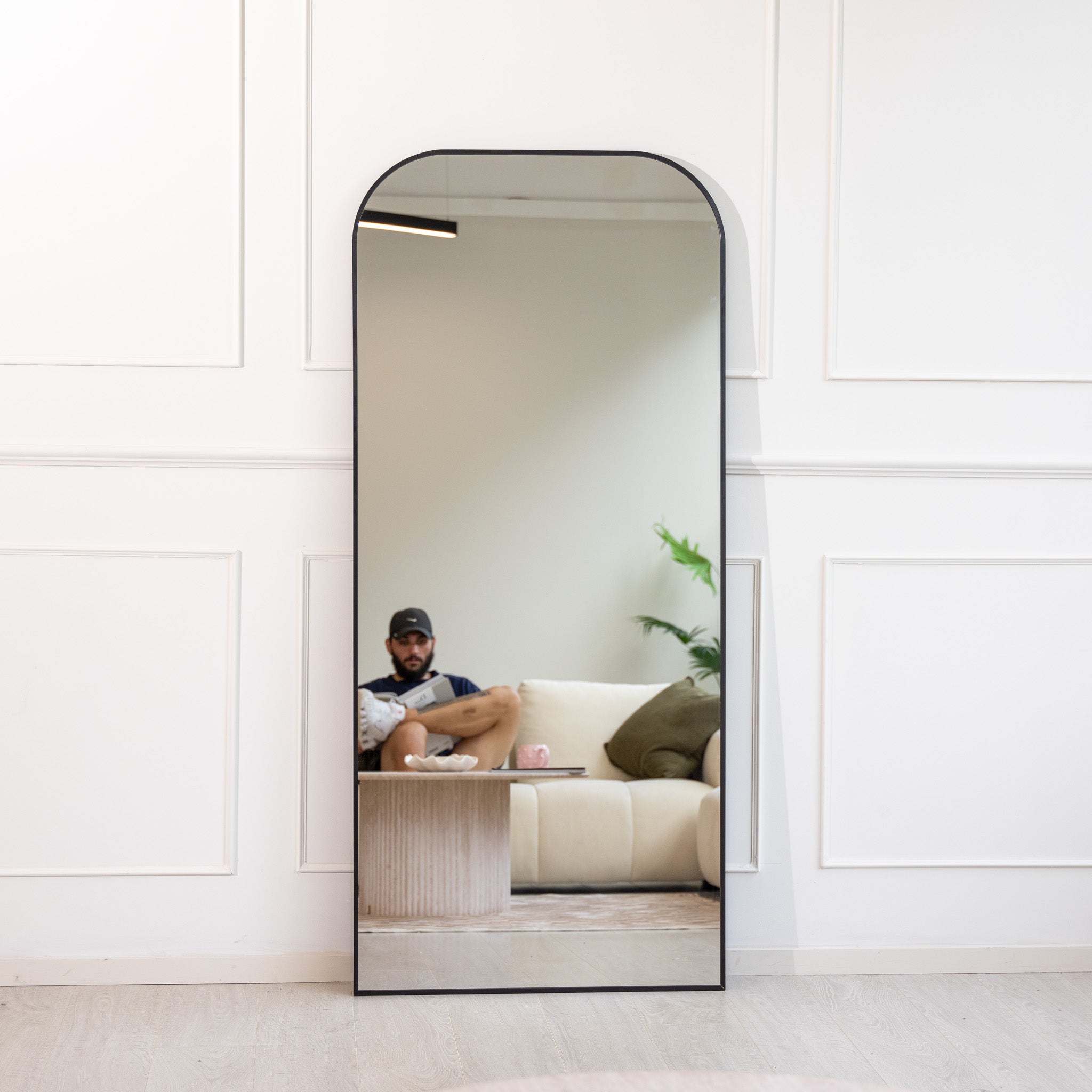 • Meet the Arcadia X. It’s our upgraded full-length mirror, defined by its softly rounded top and unique black textured frame. This tactile finish gives the classic arched shape a modern, sophisticated character. Like the rest of our 'X' series, it features our newly re-engineered back construction, making it incredibly sturdy and simple for secure wall mounting. It's a strong, timeless piece, finished with a subtle, modern detail.